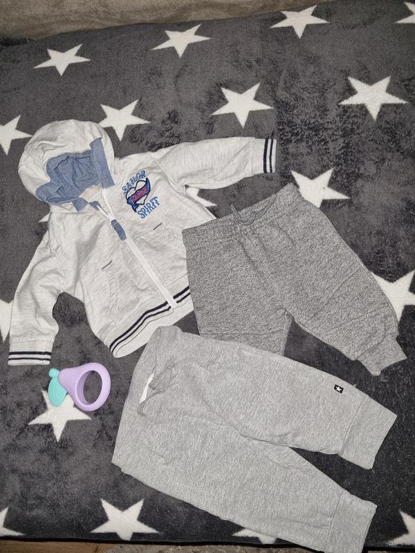 Хороший комплект одежды на мальчика от 1-3 месяцев, спортивная кофточка и двое брюк, одни тоньше, одни более толстые фирмы primark