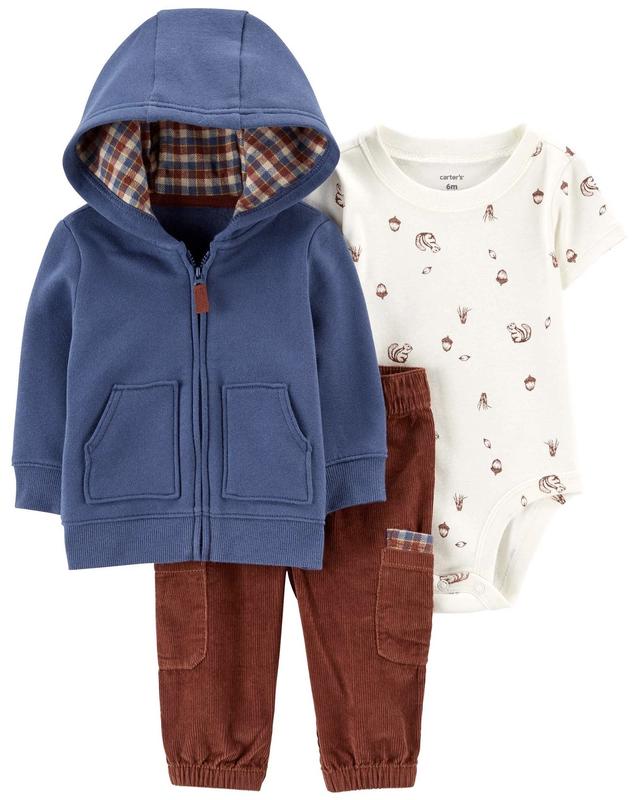 Теплий комплект carter’s картерс для хлопчика: кофта на флісі з капюшоном, боді та вельвет...