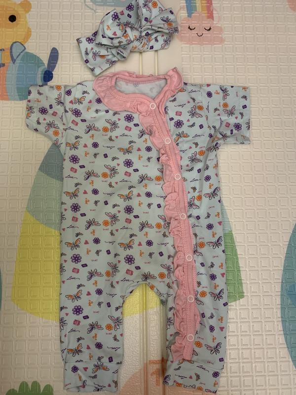 Летний ромпер-песочник с повязочкой на голову Идеальное состояние, одети 1 раз на выписку из роддома Состав ткани - хлопок 100% Размер 56