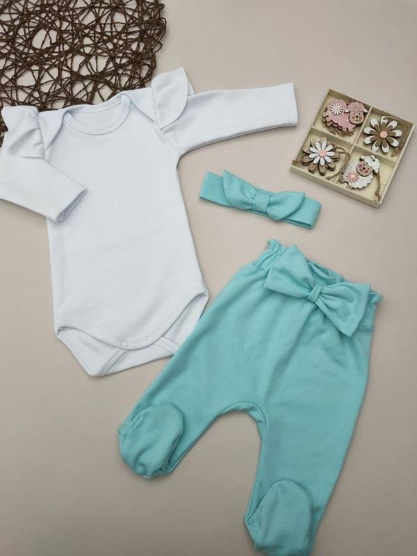 Комплект для новонародженого. ( боді + повзунки + повʼязка ) Тканина інтерлок. Розмір 62,68. Ціна 320 грн (за один комплект) Також є речі для новонароджених: комплекти, боді, слюнявчики, шкарпетки, царапки, повзунки, шапочки. Є пелюшки: бавовна, фланель, муслін, ситець, непромокаючі. Постільна білизна, рушники, наматрацники. З усіх питань звертайтесь в особисті повідомлення.