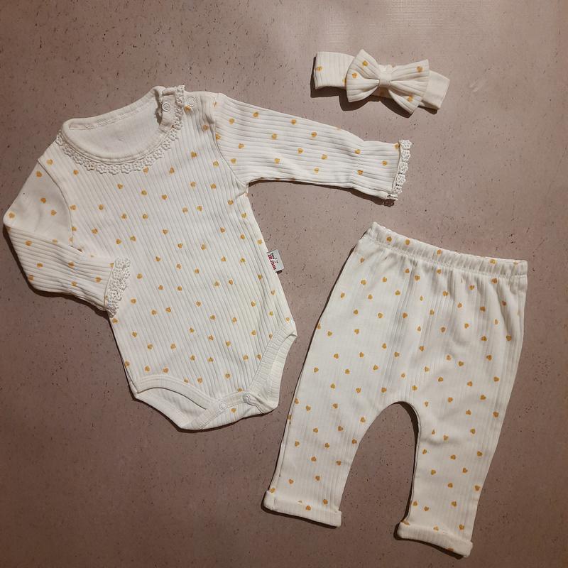 Дуже гарний комплект-трійка для дівчинки! Виробник Туреччина. гарна якість! в комплекті боді, штанці та пов'язка на голівку. розміри: 3міс, 6міс, 9міс, 12міс.