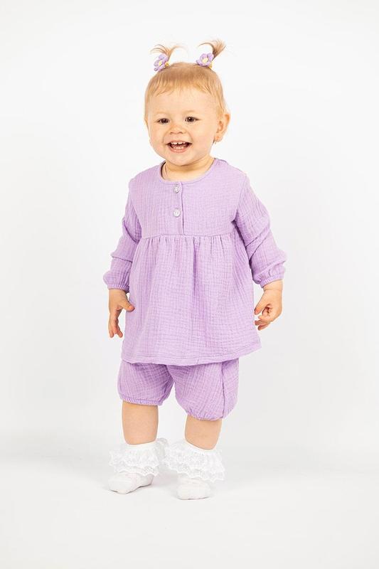Детский комплект для девочек из муслина, must have на лето🔥 Состав ткани : 100% хлопок (Муслин) Размеры : 62, 68, 74, 80, 86 Цвет: сиреневый, пудровый, малиновый ✅Оплата на карту или накладным платьем с подпиской 100 грн ✅Доставка новой и укр по почте в течение 2 рабочих дней ✅Обмен и возврат