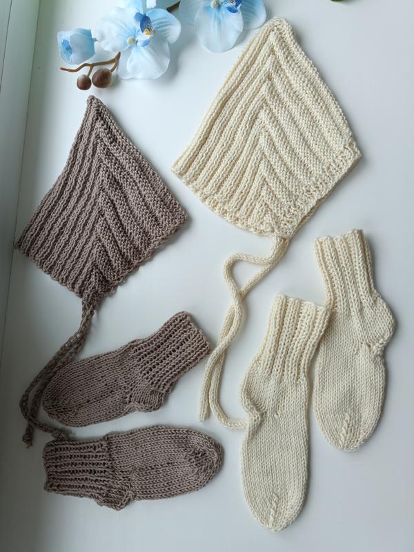 Набор вязаный для новорожденных шапочка эльф носка носки