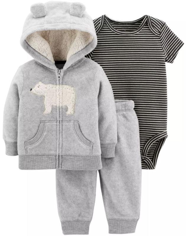 👉 Мягонький, тёплый комплект на мальчика Carters. Кофта на молнии с капюшоном, штанишки, бодик. 💥Кофта, штаны - флис. 💥Бодик - хлопок. Оригинал Carters. В наличии размер 24 мес. 🌞24М - 81-86 см (12.5-13.6 кг)