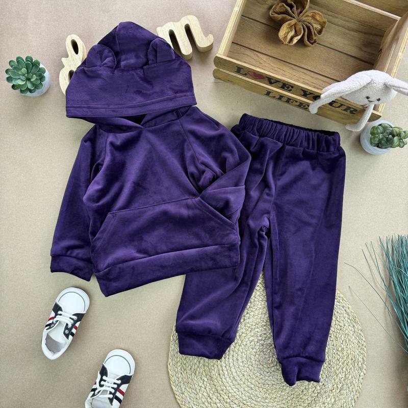Отличный костюм с ушками! Велюр высокого качества утеплен толстым и теплым мехом! Худи с капюшоном. Производитель-Украина! Не скатывается! Не теряет цвет при стирке! Размеры: 52 (86-92)- худи рукав от капюшона 32/длина 36, брюки длина 49/шаг 28 56 (92-98)- 35/38, 53/33 60 (98-104)- 36/39, 59/37 64 (110-116)- 40/42, 63/42