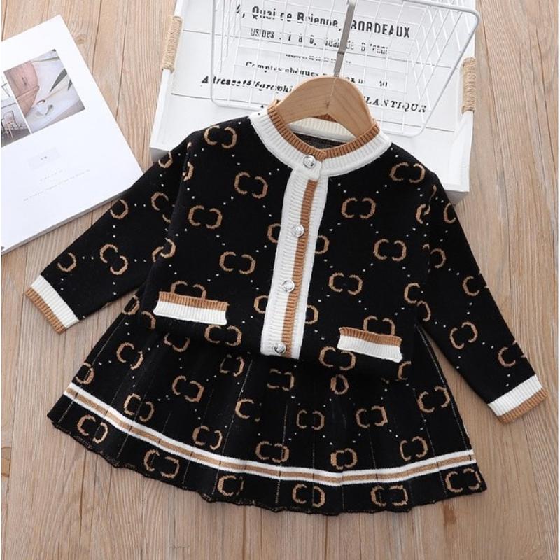 Стильный вязаный комплект для девочки с юбочкой черный