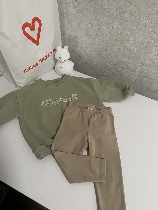 фисташковый свитшот Next - 1/2 года (может быть дольше) лосинки H&M - 1/2 года