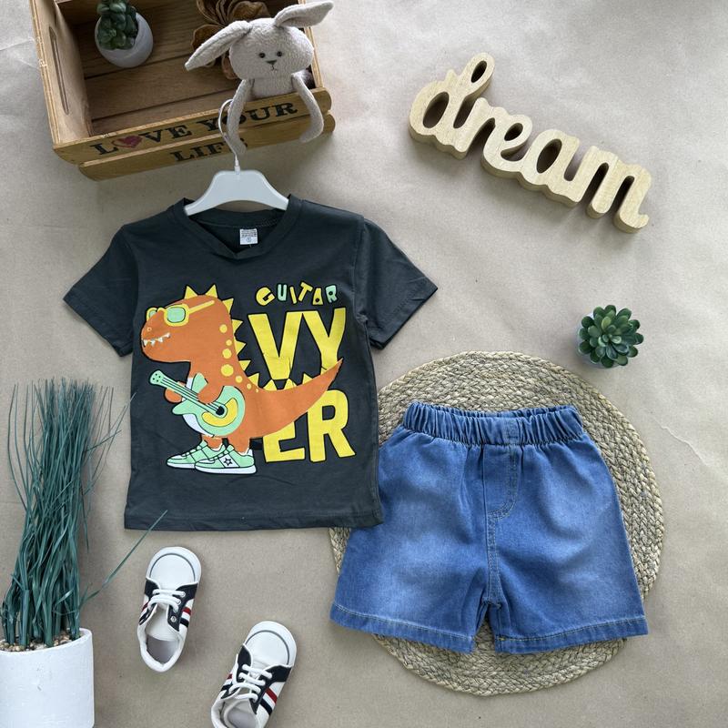 Детский костюм - производство Турция. Комплект состоит из трикотажной футболки с накатом и джинсовых шорт. Мягкие, удобные материалы обеспечивают комфорт во время ежедневной носки. Размеры: 86 (по наборе 1) – футболка длина 36 / шорты длина 26 / полуобхват 28 92 (по бірці 2) – 37 / 28 / 29 98 (по бірці 3) – 39 / 30 / 30 104 (по бірці 4) – 41 / 32 / 31