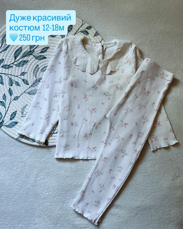 Ніжний костюм у квітковий принт з мережив ним комірцем на 12-18 місяців