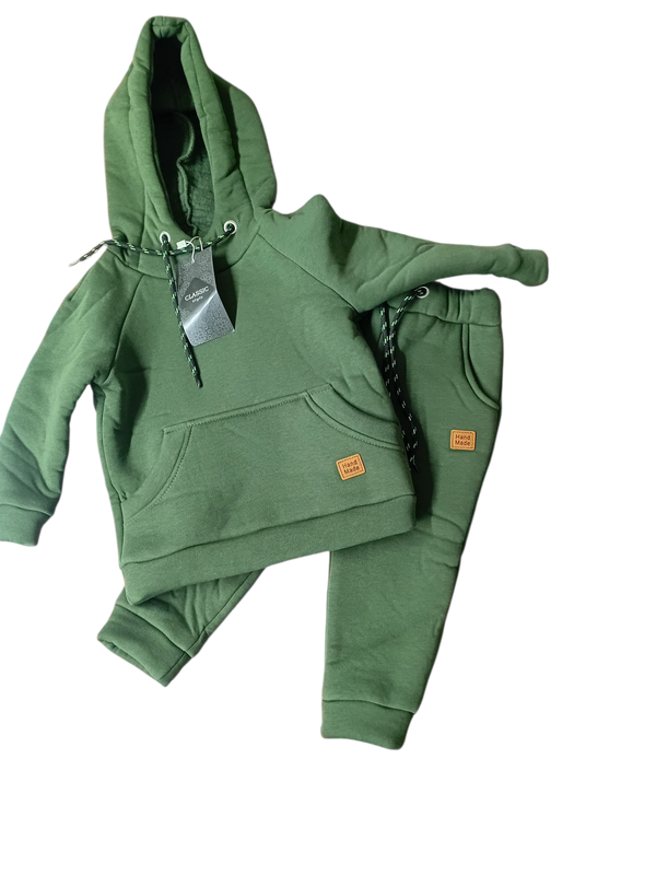 Новый теплый костюм на флисе.Колир хаки,камера не перепала,темнее, не такой зеленый.Замеры р.86 пог 32 пот 32 рукав 34 длиж 38 штани пот 24+резинка пос 30 довж 47/32