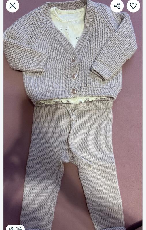 Тёплый костюм для девочки 2-5 мес из мериносовой шерсти. Тёплый и очень нежный за счет мериносовой нитки. Не колется. Красивый сиреневый цвет. Очень красивый, но мы переросли. Закажем, чтобы связали на размер больше. Есть также новые пинетки под костюм .Смотрите объявления.