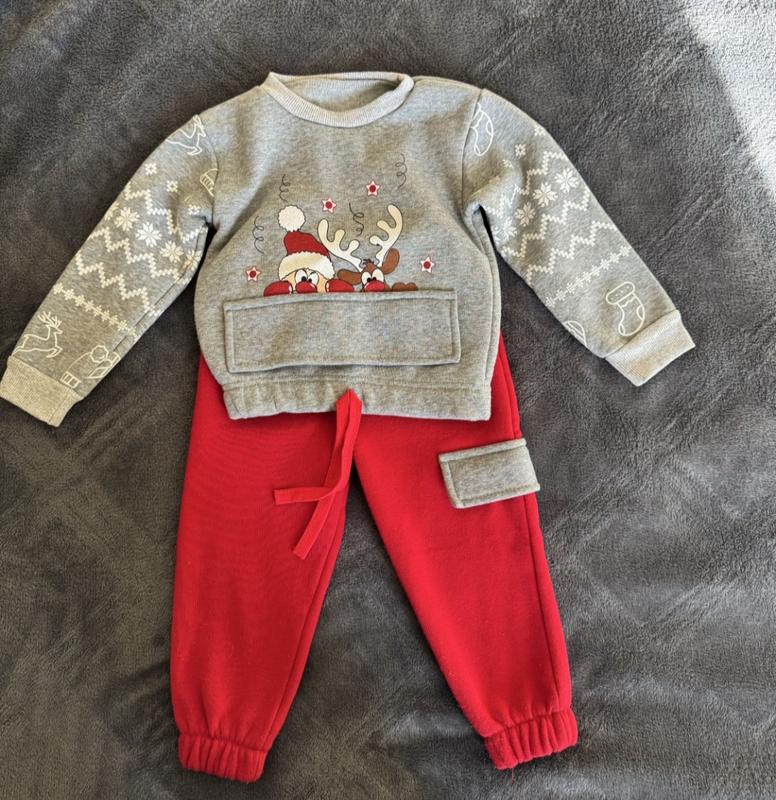 Продам тёпленький костюмчик, с новогодним принтом,86р