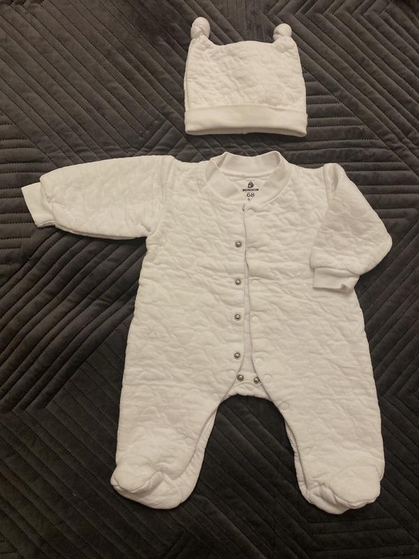 Зручний , утеплений комплект • тканина 80 % бавовна • шапочка в комплекті • якісна фурнітура Кольор: молочний Розміри 56/62/68