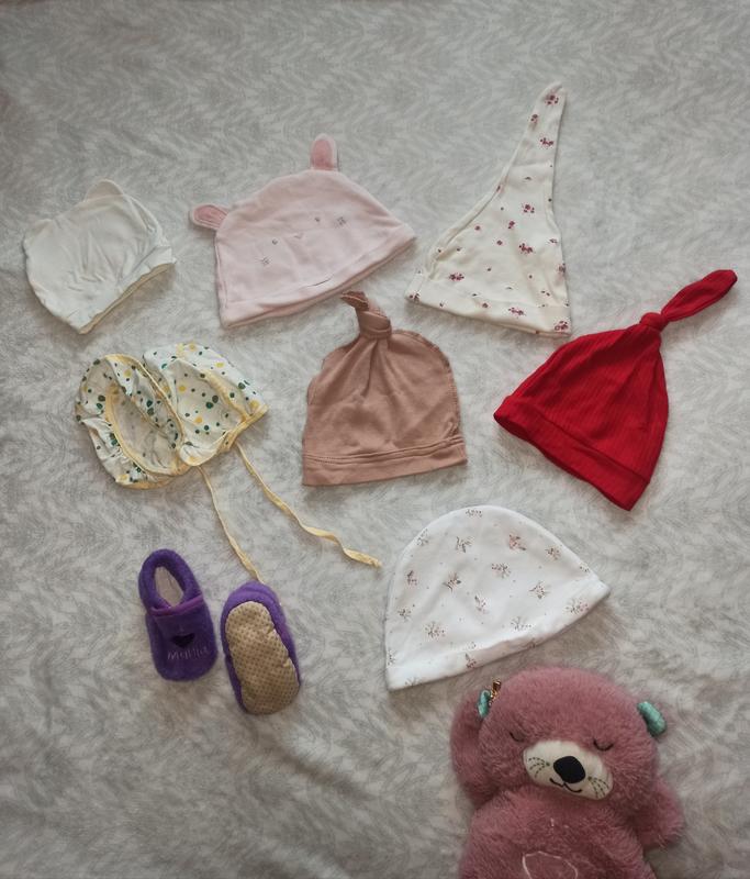 Набор шапочек 0-12 месяцев и тапули 0-12 м. В идеальном состоянии. Преимущество продаж набором.