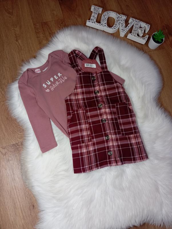 Набор на 18-24 мес боди на длинный рукав lupilu + сарафан в клетку h&m