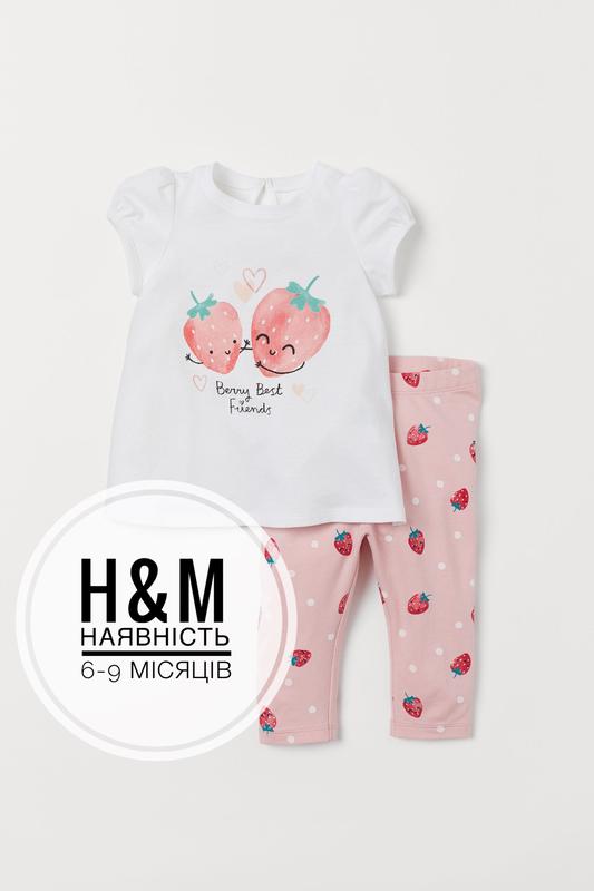 Легкий, летний и яркий набор для девочек🍓🌷🌸 от H&M 🇬🇧🇬🇧🇬🇧 . ✔️комплект: футболка и леггинсы ✔️футболка прикрашена принтом ✔️состав: 100% хлопок . 🍓6-9 м (68-72)