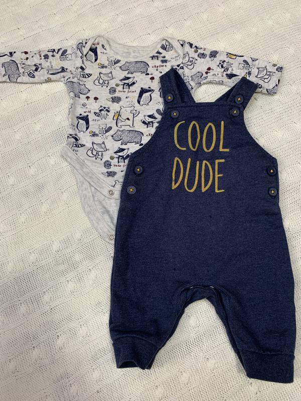 📌костюм George&Primark ▪️Рост 56-62см ▪️По бирке 0-3мес ▪️Длина боди George от плеча до низа 30см, штаны 47см ▪️100% хлопок