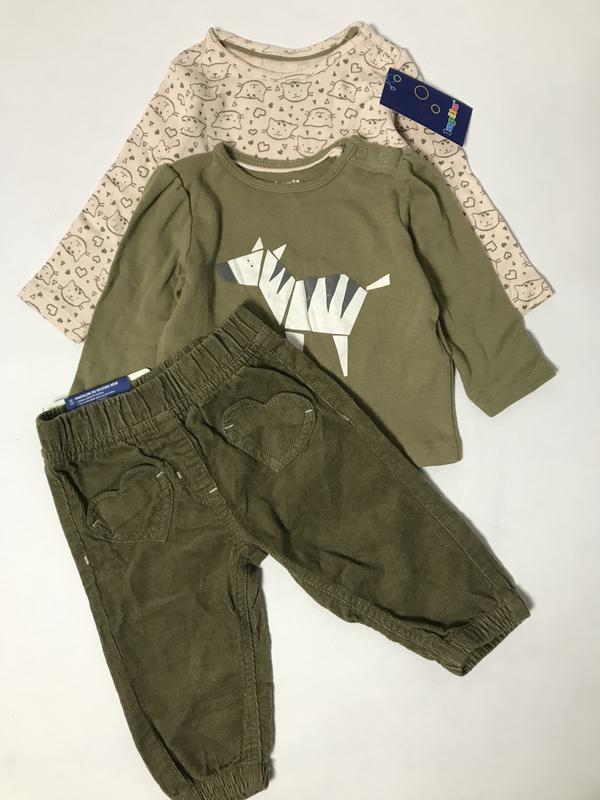 Новые. Германия Можно носить и летом как основа и осенью-весной под комбез,думаю и зимой можно одевать просто на верх теплую кофточку и под низ теплые колготки.👍🏻😉 Размер 62/68 см рост ребёнка 2-6 мес Замеры сделаю Набор с 2х регланов(на плечике 2 кнопки)и вельветовые штанишки Можно купить отдельно набор регланов 290 грн Штанишки 220 грн Будет прекрасным подарком для новорождённого,на выписку или крестины. Цена набора 460 грн