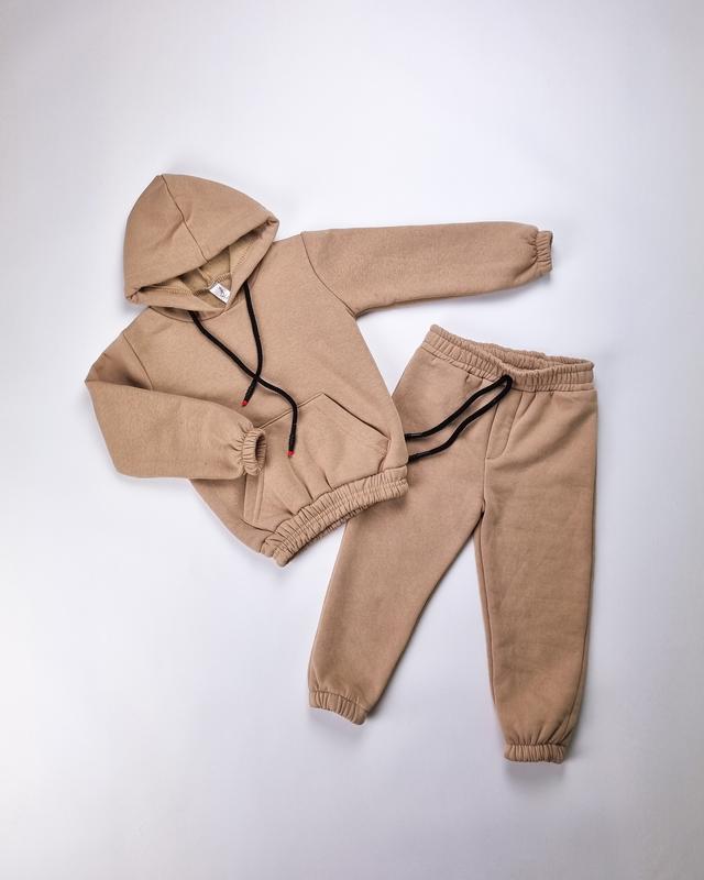 Тёплый костюм для девочки на флисе однотонный с начёсом бежевый, тёплый спортивный костюм...