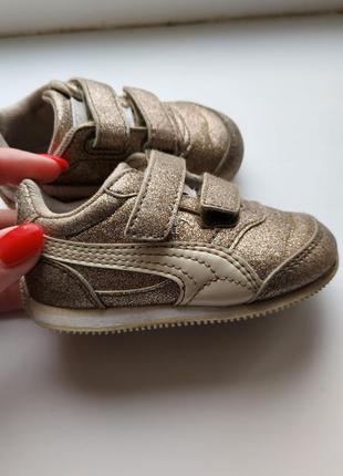 Дуже зручні та стильні кросівки фірми PUMA. Розмір 19. Устілка приблизно 12 см. Стан хороший, але носочки затерті (видно на фото).