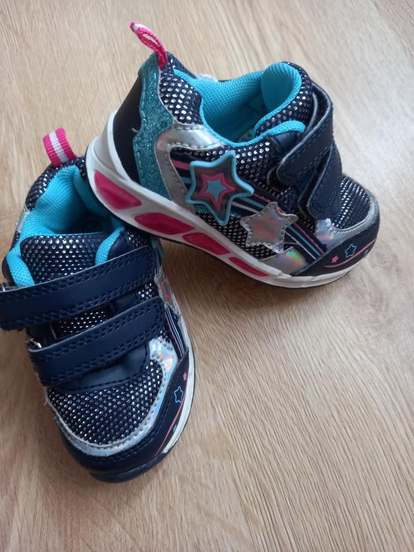 Кроссовки детские, для девочки,размер 21, подошва светится, цвет синий, бирюза, малина, идеальное состояние. Цена 189 грн.