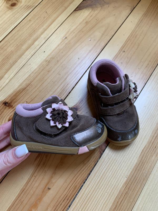 Для девочки натуральная замша серединка кожаная стелька на липучках красивые твердые задние очень хорошо начинать ходить (только взбитые передки) стелька имеет 14см весенние