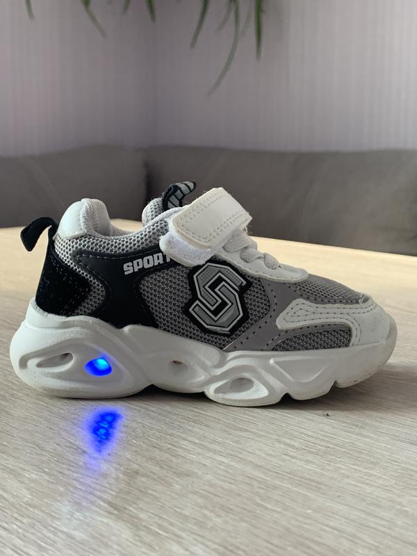 Кросівки в білому кольорі 22 розмір. Стан ідеальний, підошва світиться при ходьбі. Довжина по устілці 13,5 см Недоліки відсутні