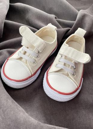 Кеды детские, унисекс. 19 размер, 12,5см( почти 13см) В хорошем ( суперовом) состоянии. Ребенок носила, очень удобные, носиками не зацепится. Отлично стираются в машинке, не стягиваются.