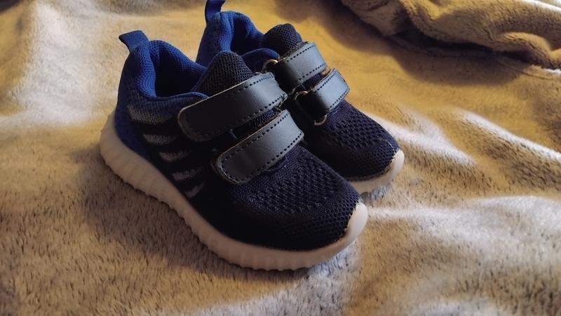 Детские кроссовки, синего цвета Длина стельки 13 см Подошва в темне светится