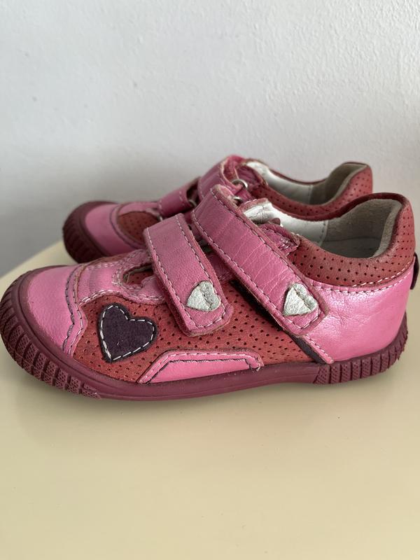 Очень красивые фирменные кожаные кроссовочки на девочку в идеальном состоянии! Качеством будете довольны, очень удобные и стильные!Гнучка подошва(бегать детёны будет комфортно)