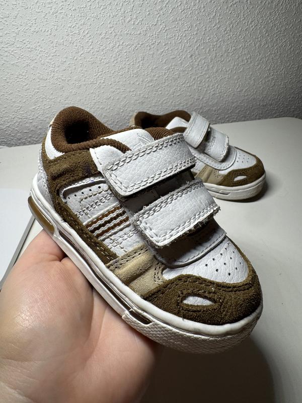 Дитячі кросівки NEXT, оригінал, розмір UK 5 (устілка ~14 см) Стильні та зручні кросівки від британського бренду NEXT. М’яка устілка, легкі, добре фіксуються двома липучками. Верх — поєднання білої шкіри та замшевих вставок кольору camel, всередині приємна текстильна підкладка. Універсальний дизайн — підходять і для хлопчика, і для дівчинки. Ідеальні для осені, весни чи теплої зими.