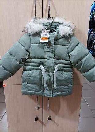 Нова демі куртка для дівчинки. Хутро на капюшоні знімається. Тканина вітро та водозахисна. На поясі стрічка,якою можна регулювати об'єм. Спереду дві кишені. Колір : бірюзовий. Зріст 80 см(12 міс): Довжина - 40 см ПОГ - 32 см Плечі - 26 см Рукав від плеча - 30 см Доставка : Нова пошта Укрпошта