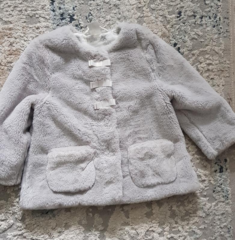 Ніжка шубка для дівчинки 86 стан нової,одягнули 1 раз ніжно сіра,легка фірма H&M