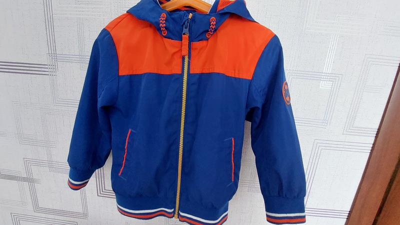 Дуже гарна, зручна курточка-вітровочка хлопчику на вік 2-4 роки. Оптимально до зросту 104 см. Якісна тканина, карточка легенька. Зручний капюшончик. Без дефектів. Рекомендую! Заміри: - довжина - 41 см; - ширина під руками - 36 см; - довжина рукавів від плеча - 32 см, від горловини- 40 см.