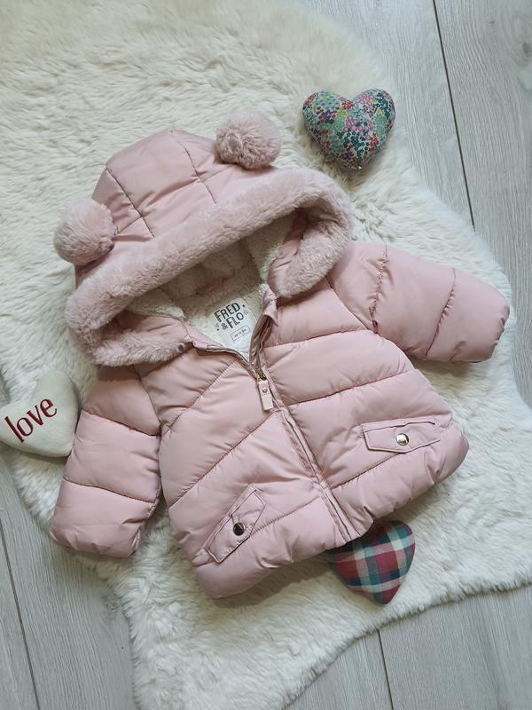 Куртка еврозима на синтепоне и на меховой подкладке F&F 0-3 мес, рост 62 см Длина 32 см, ширина 31 см, рукав от плеча 23 см В идеале Цена 350 гр