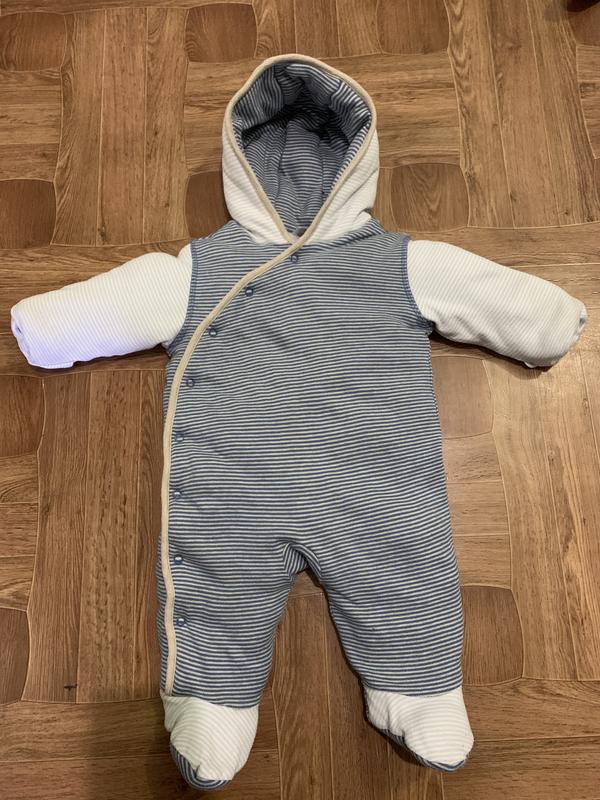 комбинезон в хорошем состоянии. Подходит на демисезонный период и даже под зимний конверт зимой. Фирма Mini club размер 68 (3-6 мес) Утеплитель: 100% полиэстер; подкладка: 100% коттон. Подходит для мальчика или девочки. Замеры: ПОГ-29 см Рукав-22 см Длина от плеча и до пятки-54 см Длина до памперса-38 см