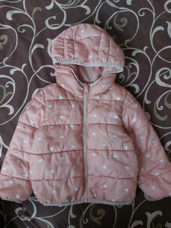 Демисезонная куртка с легким утеплением 86 размера удобный капюшон застежка на молнию узор в горошек декоративное стеживание гладкая подкладка