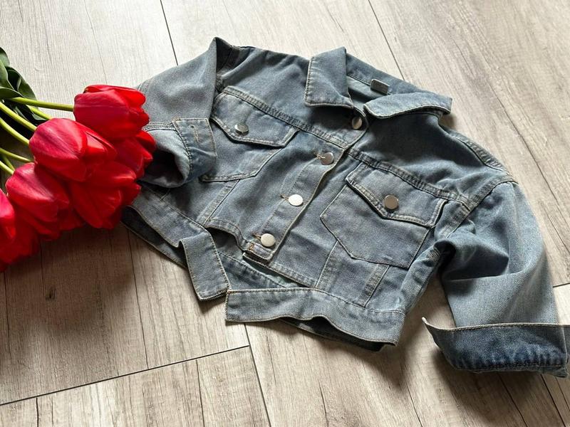 💸690 грн 😍Стильная джинсовка 💯% джинс Металлические пуговицы Товар проверяем на поште ‼️Доставка 1-2 дня +- 2см Замеры💗 90- Длина 33 см Рукав от горла 43 см 100- Длина 35 см Рукав от горла 44 см 110- Длина 37 см Рукав от горла 46 см 120- Длина 38см Рукав от горла 48см 130- Длина 40 см Рукав от горла 50 см фото 2 реал