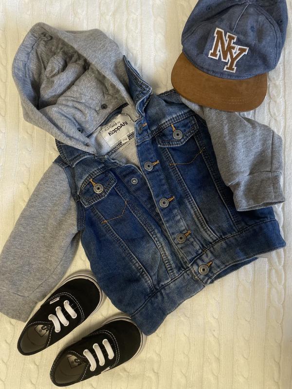 Джинсовая куртка, классная, стильная,стан отличный размер 74 ( обувь и кепка отдельно в ленте)