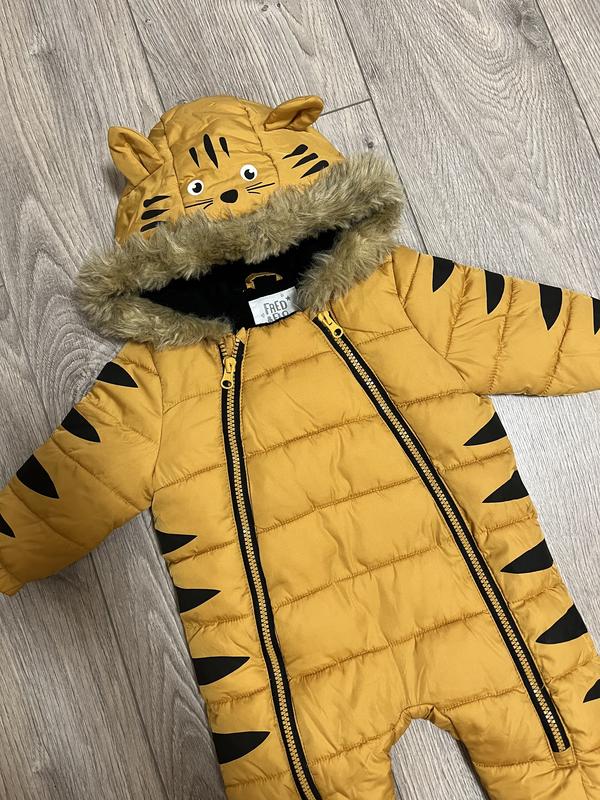 Демисезонный комбинезон для мальчика f&f Размер 3-6 Замеры; Длина до пяточки - 59 От плеча до памперса по спине - 41 Рукав - 25 Ширина - 32