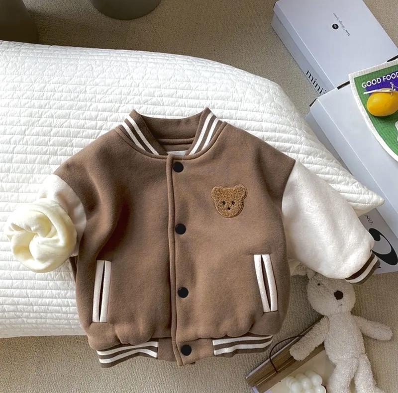 Стильный Бомбер для деток.Колир - коричневый + белый. На пуговицах, карманы, манжеты. Рисунки нашивка.Теплый. Ткань - трикотаж +прочная ткань,типа в виде трехнитки. Не скатывается, качество просто супер ♥️ 🦄Размеры: 80(5 шт) 90(5 шт) 100(5 шт) 110(5 шт) 🦄 Замеры: 🦄80:Длина 34,пог 34, рукав от горла 32 см. 🦄90:Длина 37, пог 35,рукав от горла 35 см. 🦄100:Длина 39, пог 36,рукав от горла 37 см. 🦄110:Длина 41, пог 38,рукав от горла 42 см. Ориентация на замеры, допускается погрешность в 1-1,5 см.
