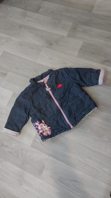 Детская куртка для девочки в идеальном состоянии джинсовая с утеплителем. На 1,5-2 года. рукав 30см, плечи 29см, длина 38см, грудь полуобхват 36см