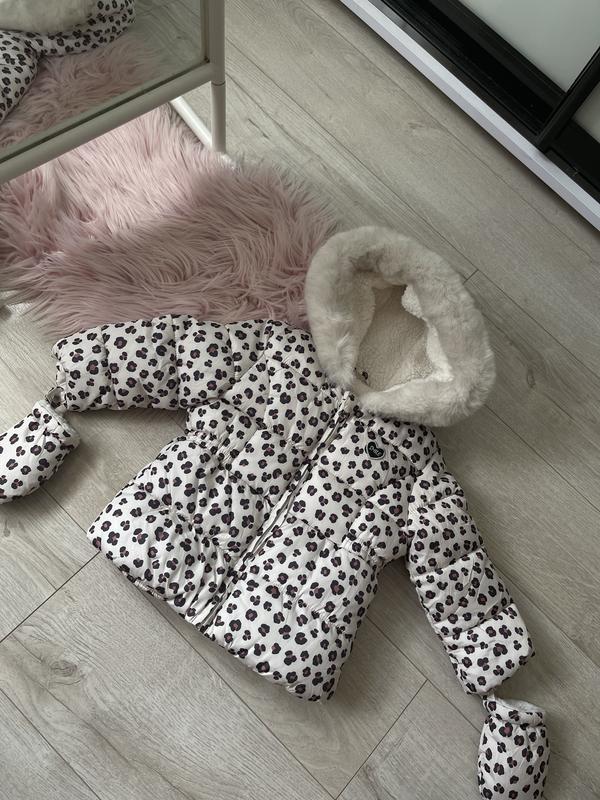 Куртка для девочки 9-12м состояние новой без дефектов и пятен, в наборе идут перчатки для удобства цепляют на кнопки. Утеплена