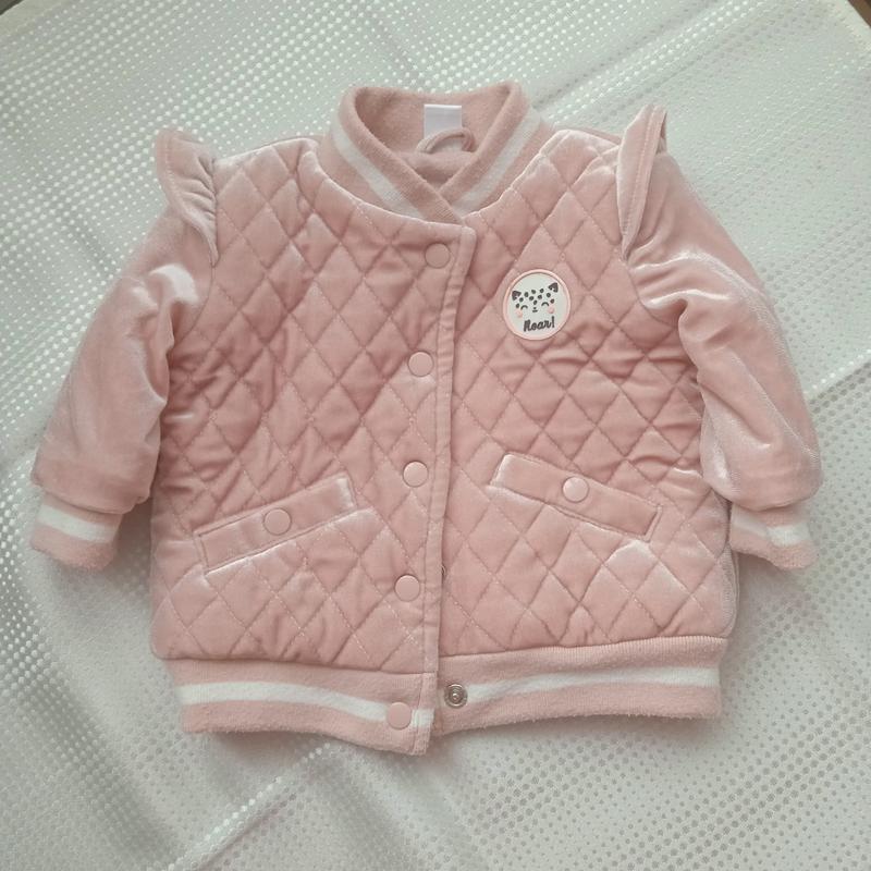 Очень милый бомбер для девочки, подойдет как раз на начало осени, в отличном состоянии, одевали всего несколько раз. Мы носили от 6-8 месяцев.