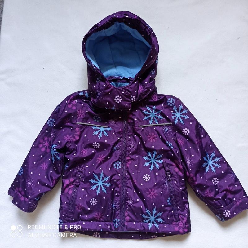 на рост 86-92 см. длина 42 ширина 34 рукав 42 утеплена флисом, капюшон пристегнут молнией состояние почти новой