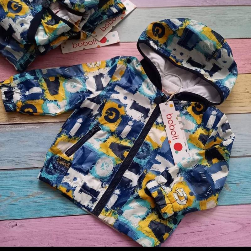 На мальчика замечательная ветровочка на трикотажной основе, верх ткани плащевка,на руках и поясе манжеты на ризинках, карманы на замке. Все в идеальном СТАНИ. Саме як раз носити в таку погоду.
