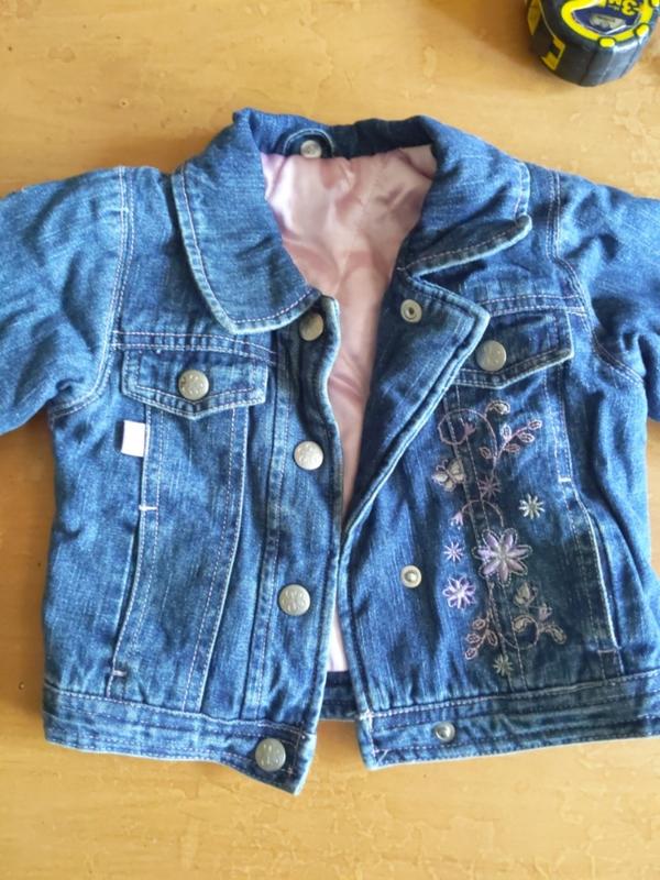 Детская джинсовая куртка на подкладке длина 30см рукав 24,5см плечи 21см
