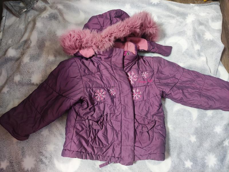 Куртка зима. Ткань плотная, ветронепродуваемая. Размер от производителя 1-2роки, 86см, но фактически на 2-3роки. Длина от плеча до низа 41см, ширина в районе подмышками 39см, длина рукава по верхней стороне 35см. На капишоне есть кнопки для регулировки глубины капишона