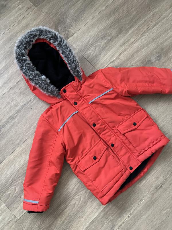 Теплая, на флисе куртка Matalan в красивом оранжевом цвете. Смотрится очень стильно! Размер 1,5-2 рочки. Состояние идеал, без нюансов.