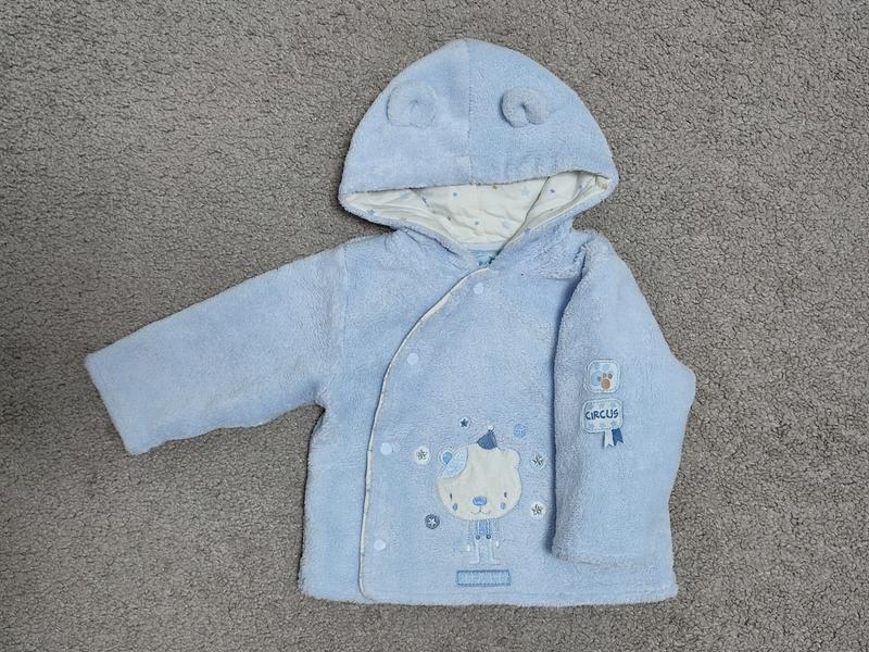 Куртка на весну/осень для малыша по бирке 0-3 мес, но будет дольше. Очень классная, мягкая. Ребенку тепло и удобно. Замеры: длина 29 см штани плечей 22 см длина рукава от плеча 23 см.